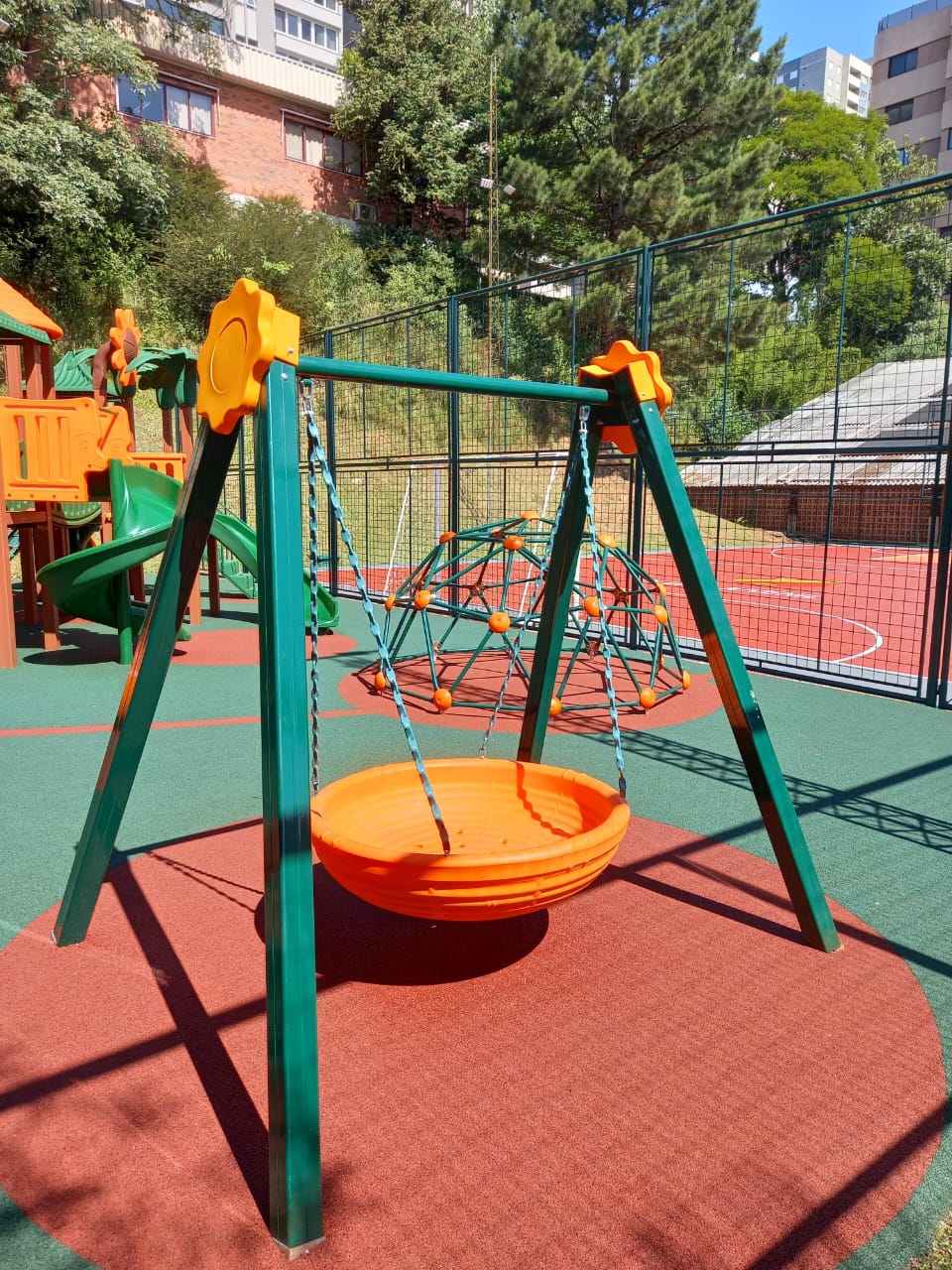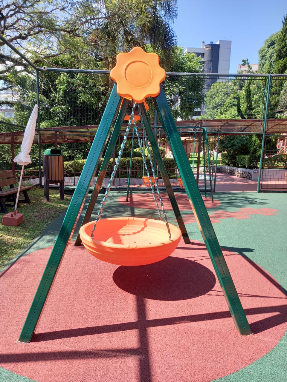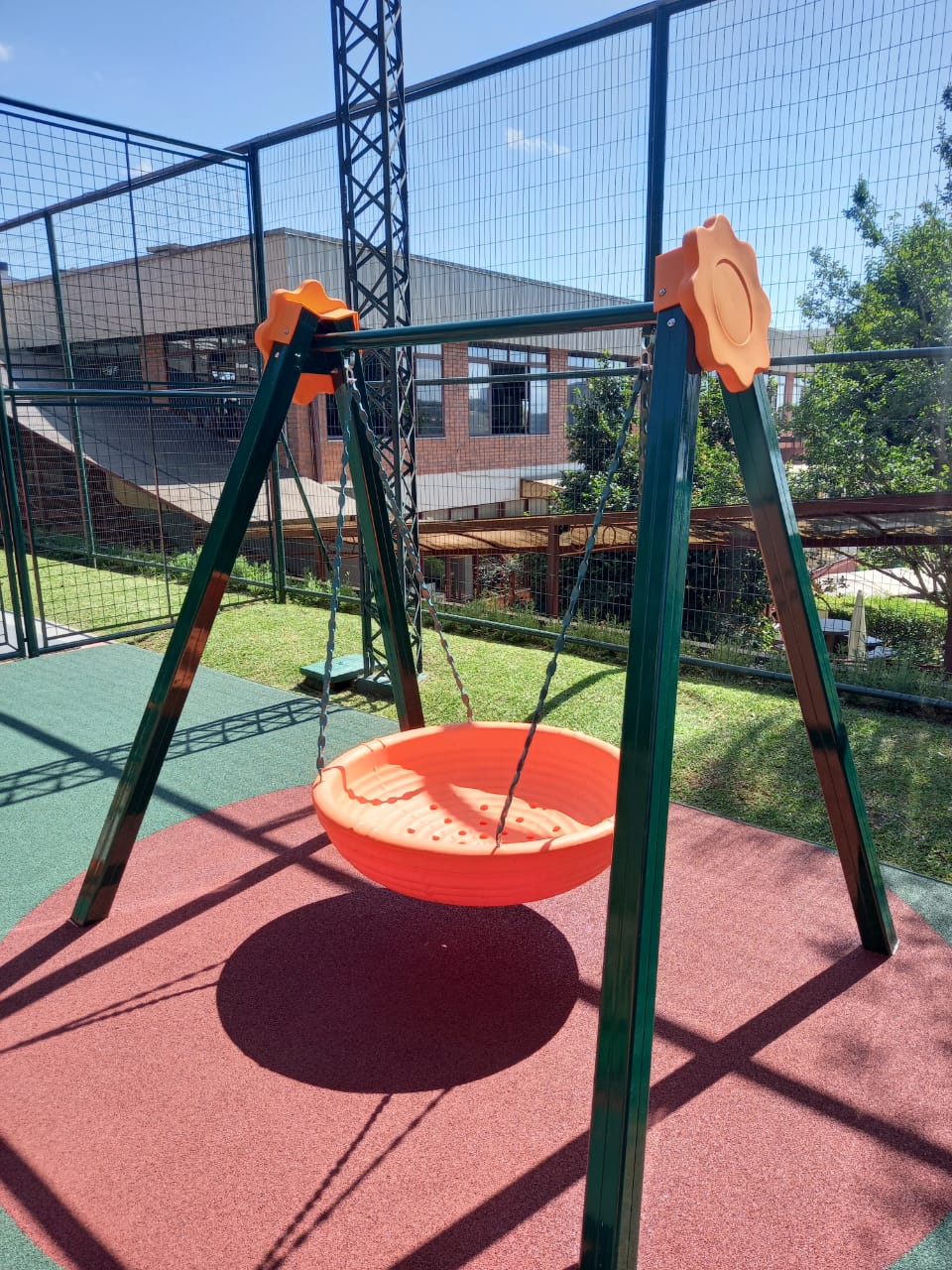 O Balanço ninho P-60 C é composto por uma estrutura de alumínio com o assento produzido em plástico rotomoldado no formato de cesto.