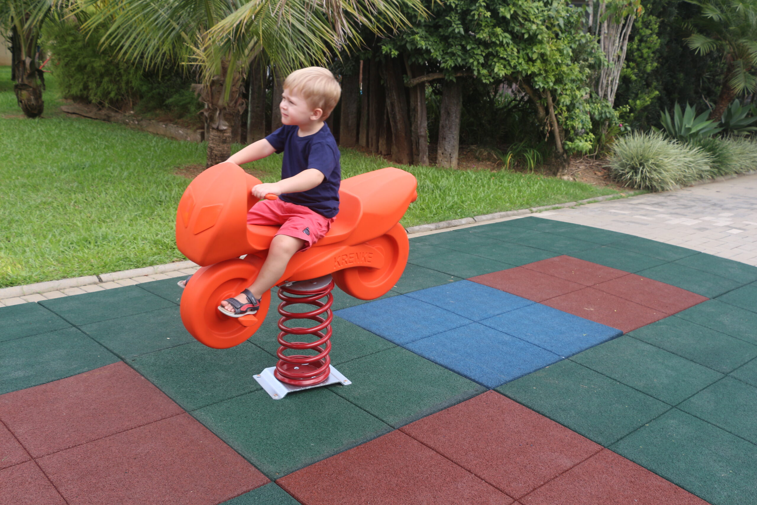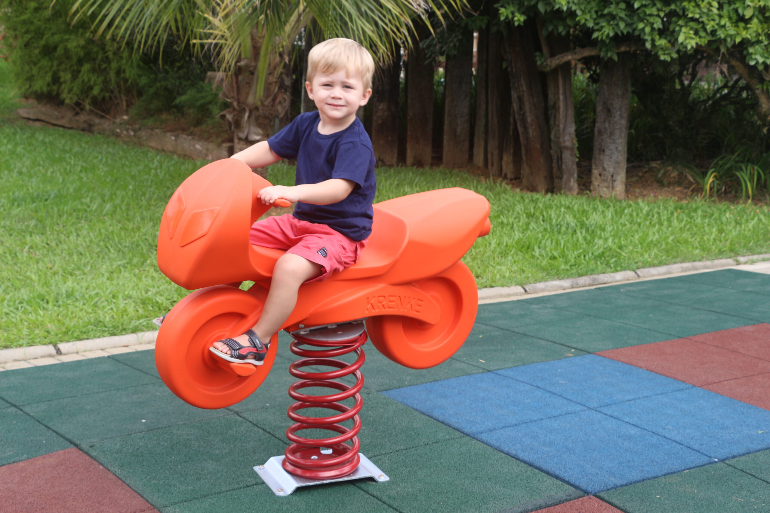 Em formato de moto, com o corpo produzido em plástico rotomoldado e a mola em aço galvanizado a fogo, essas motinhos garantem segurança, durabilidade e qualidade enquanto divertem a criançada!