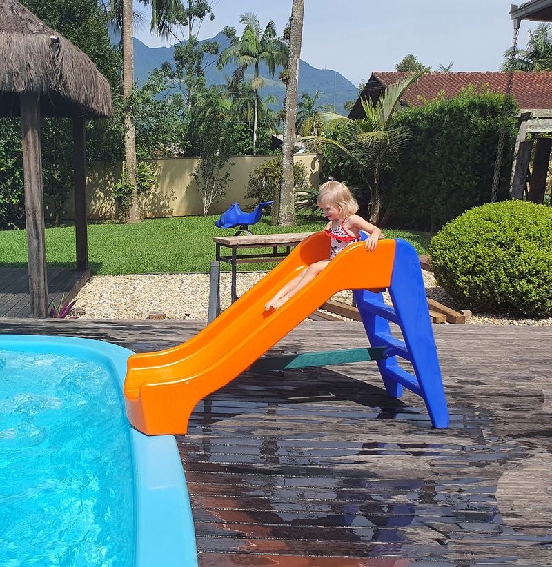 Medida do produto: 1,70 x 0,55m / Altura do escorregador (leito): 0,80m / Altura total: 1,00m
